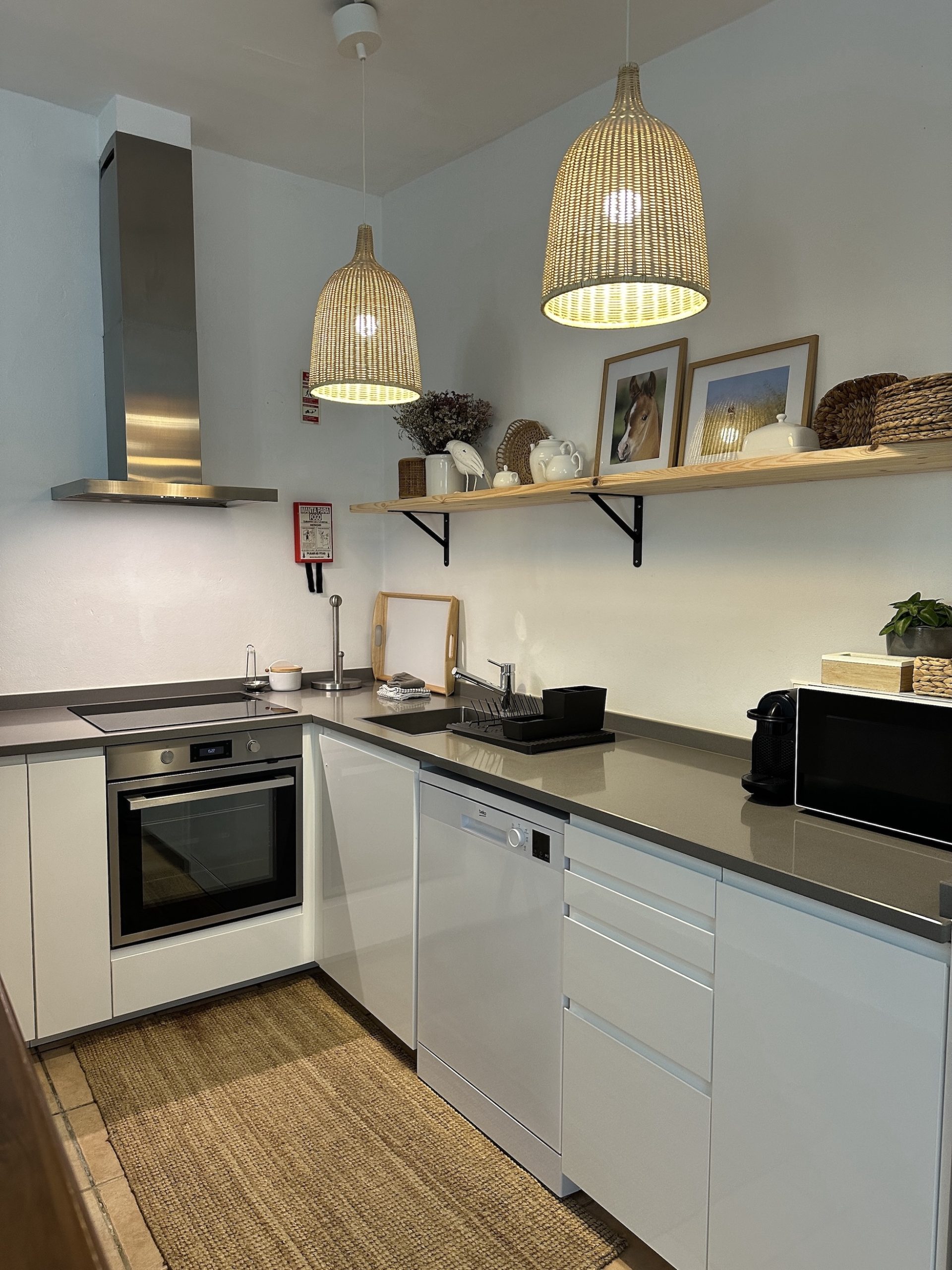casa com 2 quartos, que podem ter 1 cama de casal extra-large ou 2 individuais, 1 casa de banho com duche, sala comum com lareira aberta, Smart TV LG com ligação wireless, mesa de refeições para 8 pessoas, 2 sofás de 2 lugares , cozinha completamente equipada, com máquina de lavar a loiça, frigorifico com congelador, forno e Microondas, máquina de café Nespresso, máquina de café de filtro, espremedor de citrinos, torradeira, chaleira, utensílios de cozinha e loiça e encontra-se toda mobilada e decorada de forma a proporcionar uma estadia confortável. Ar condicionado nos 2 quartos e na sala.
